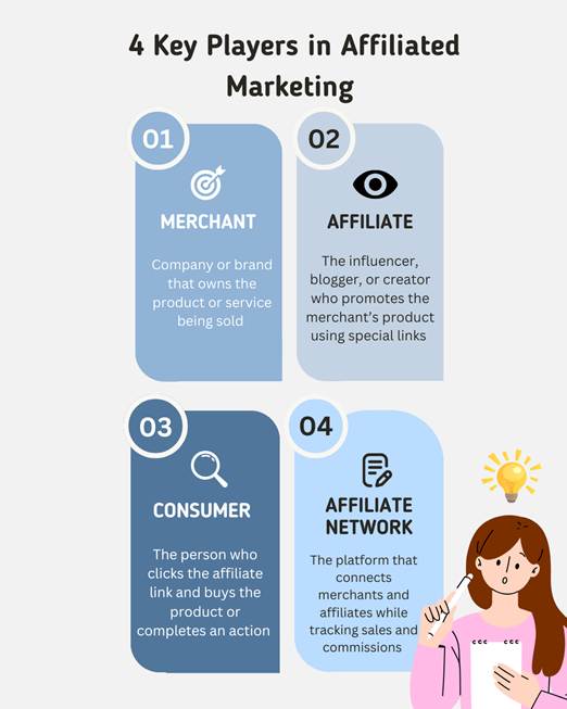 Even though affiliate marketing might look simple on the surface, several different participants work together to make the system function.